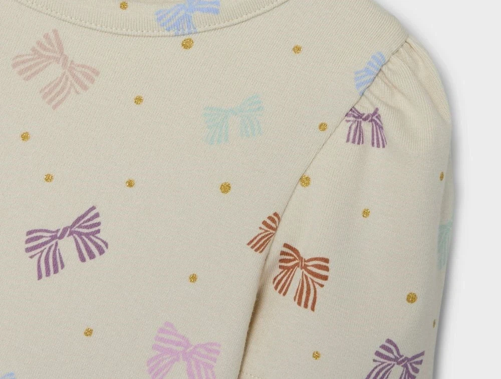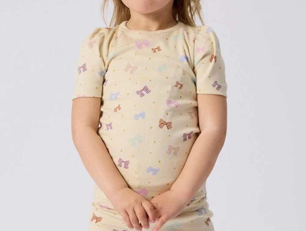 Kortærmet top i farven birch med sløjfeprint fra Name It.