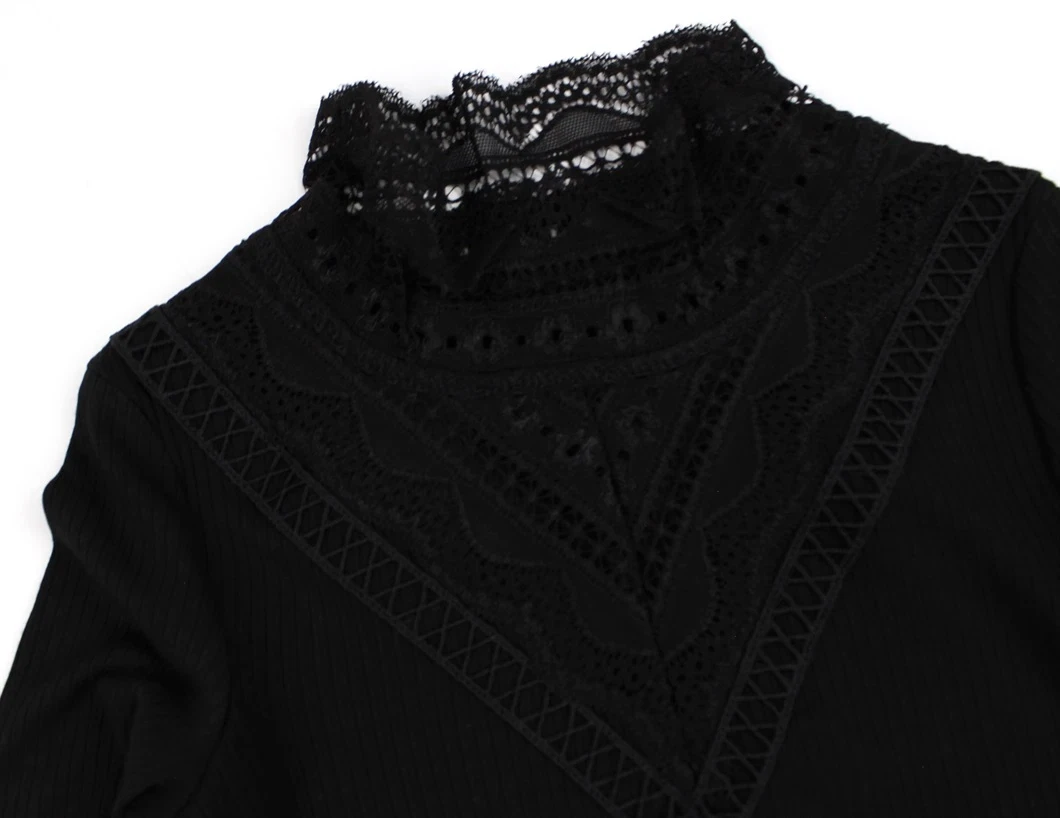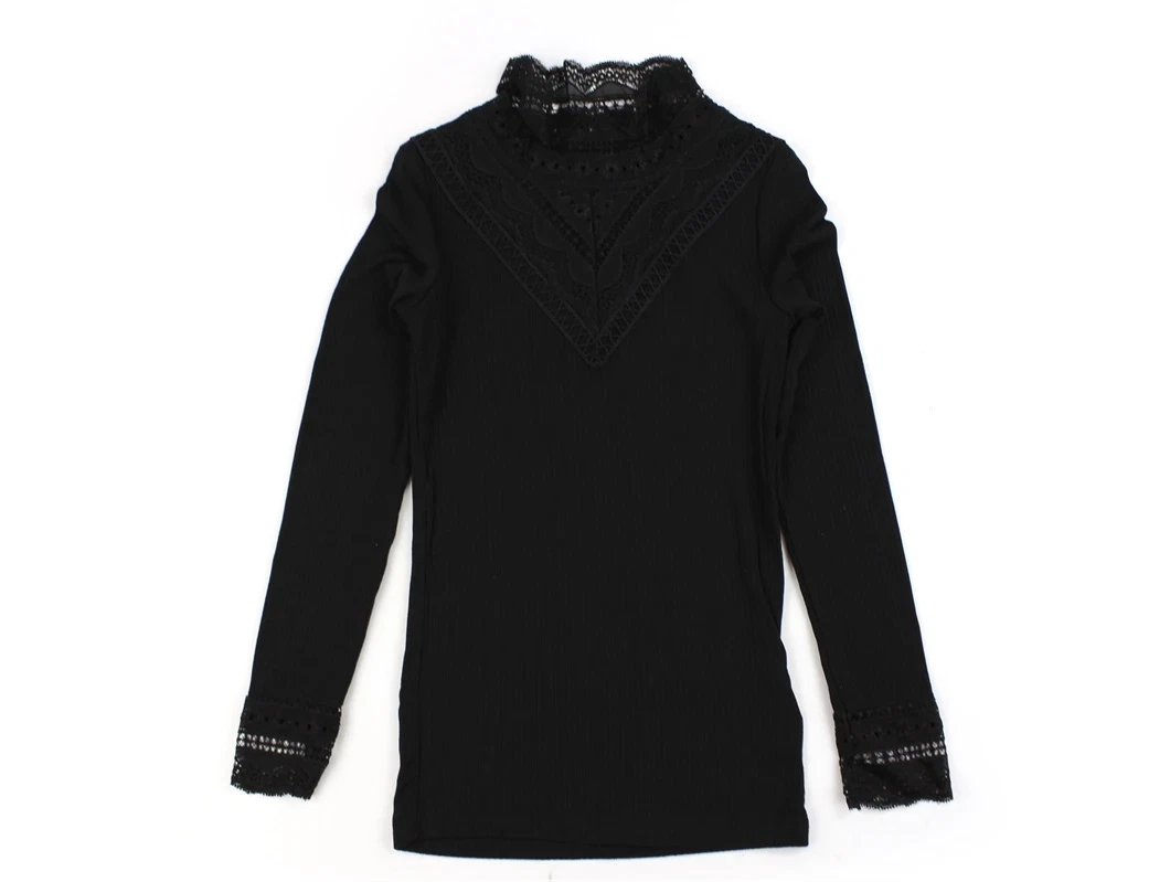 Skøn langærmet top i farven sort med blondedetalje fra Name It.