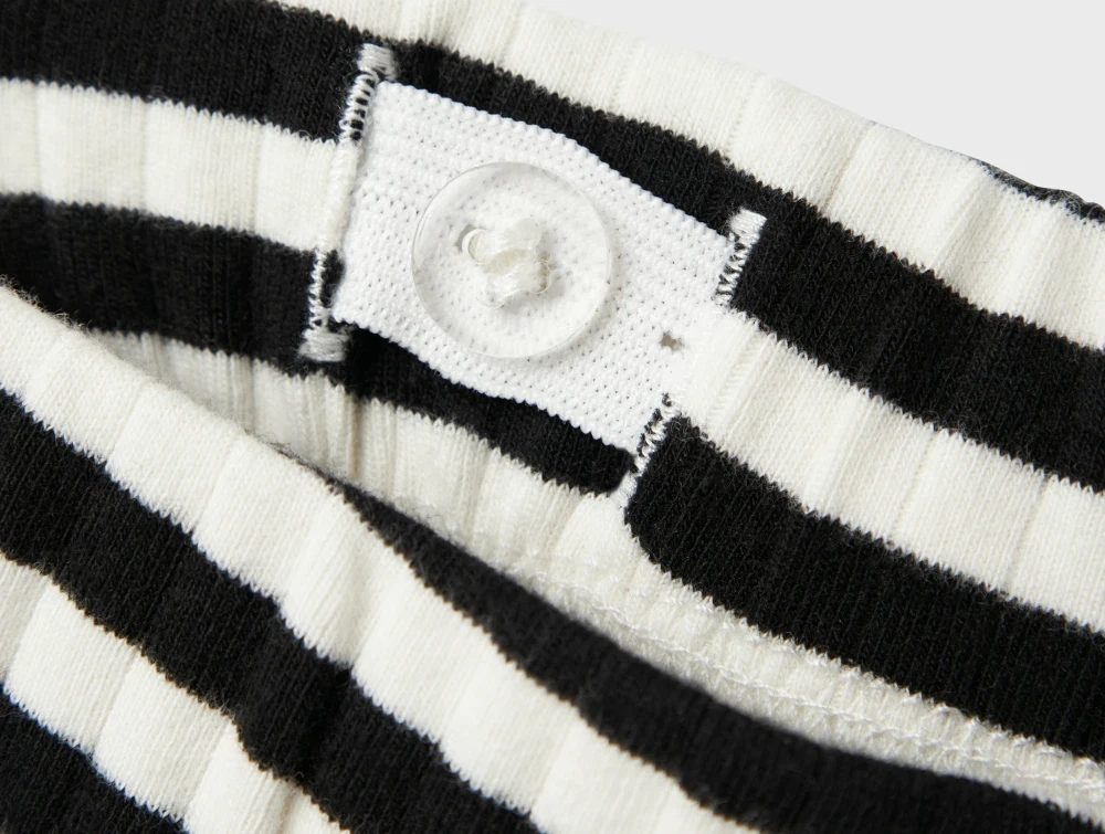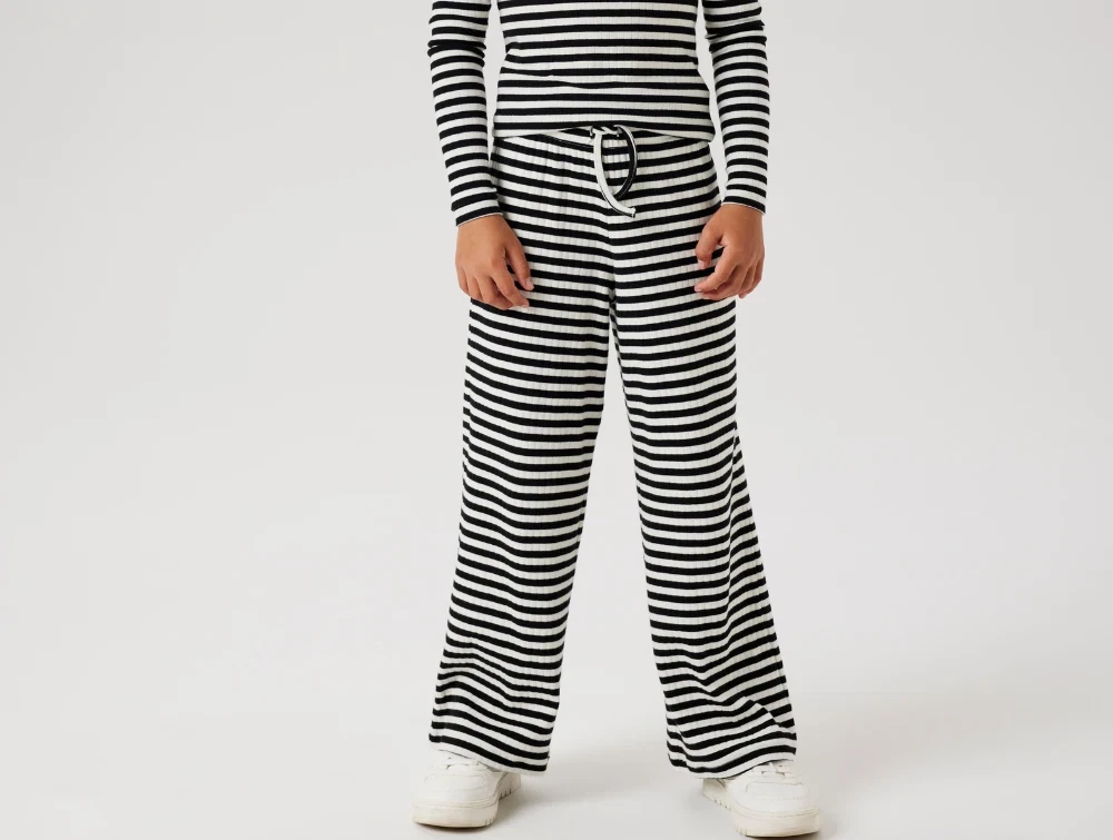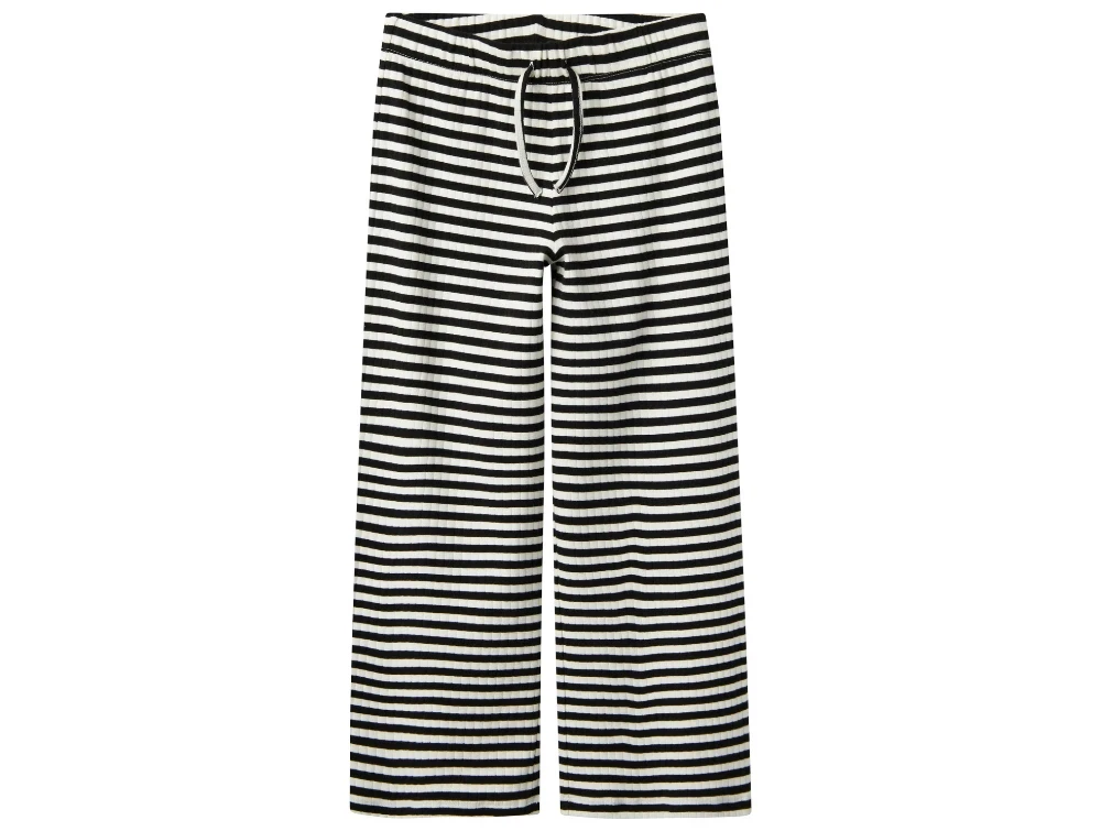 Brede stribede bukser i ribkvalitet i farverne sort og bright white fra Name It.