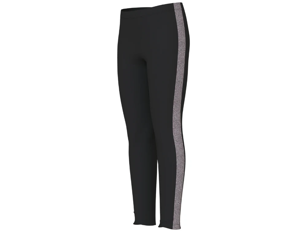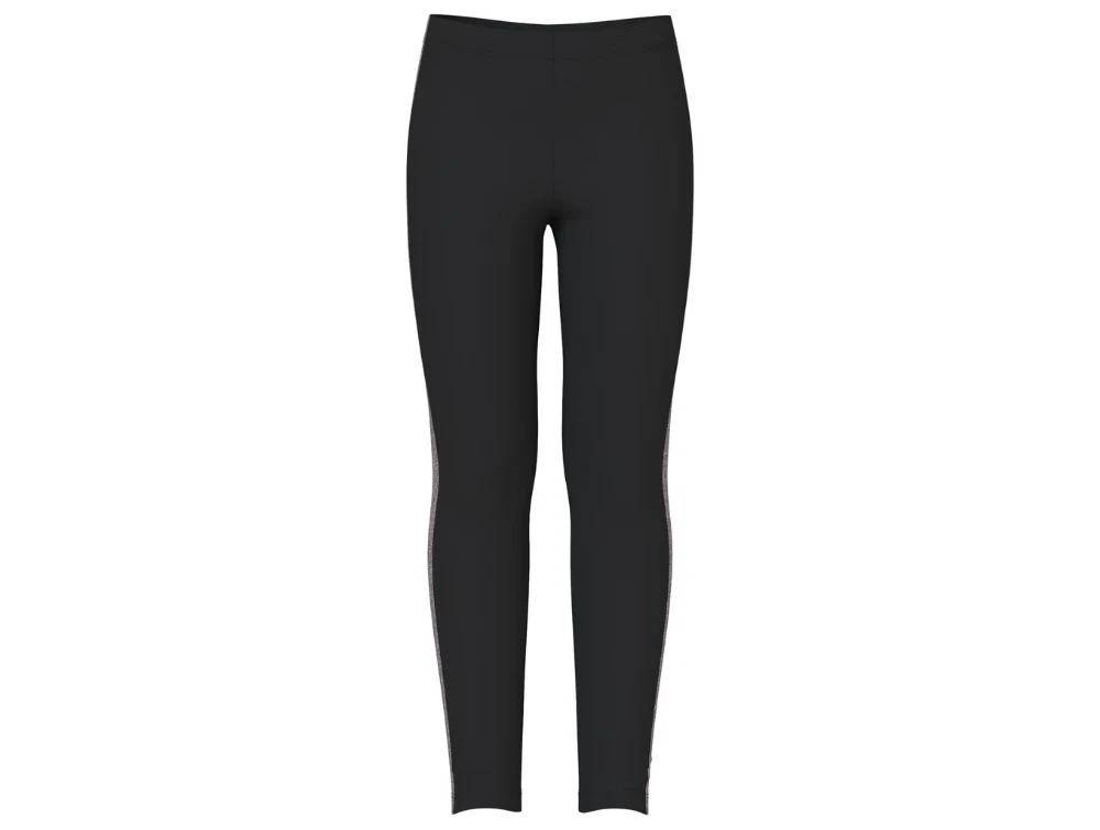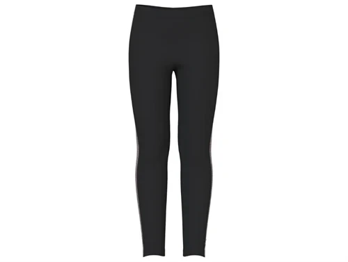 Leggings i farven sort med glitterstribe i farven corsage på siden af hvert bukseben fra Name It.