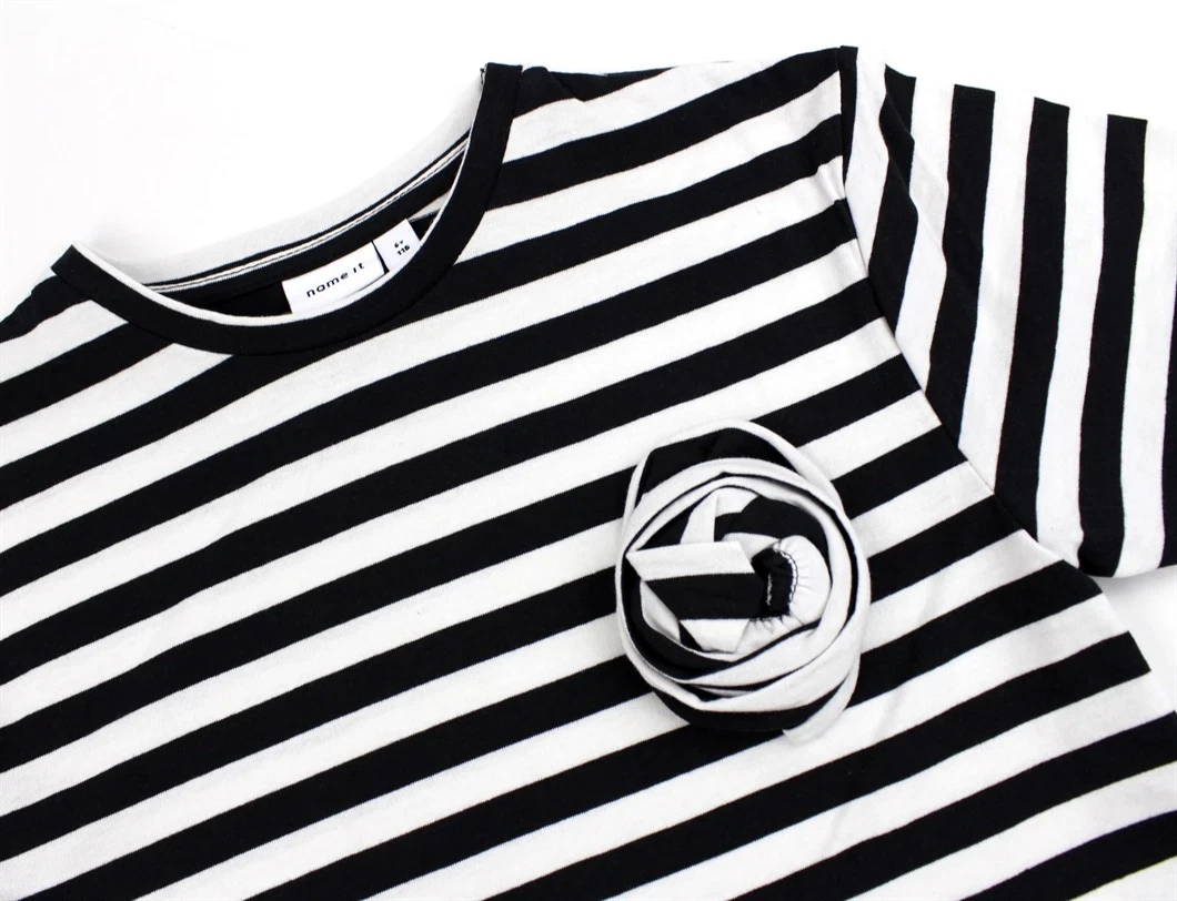 Skøn stribet top i farven black oyster med lille stribet stofblomst fra Name It.