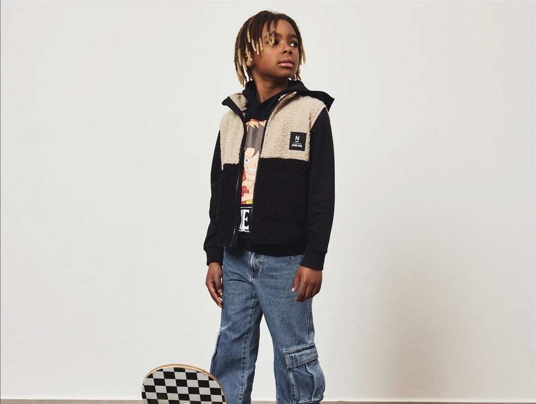 Cool teddyvest i farverne sort og pure cashmere fra Name It.