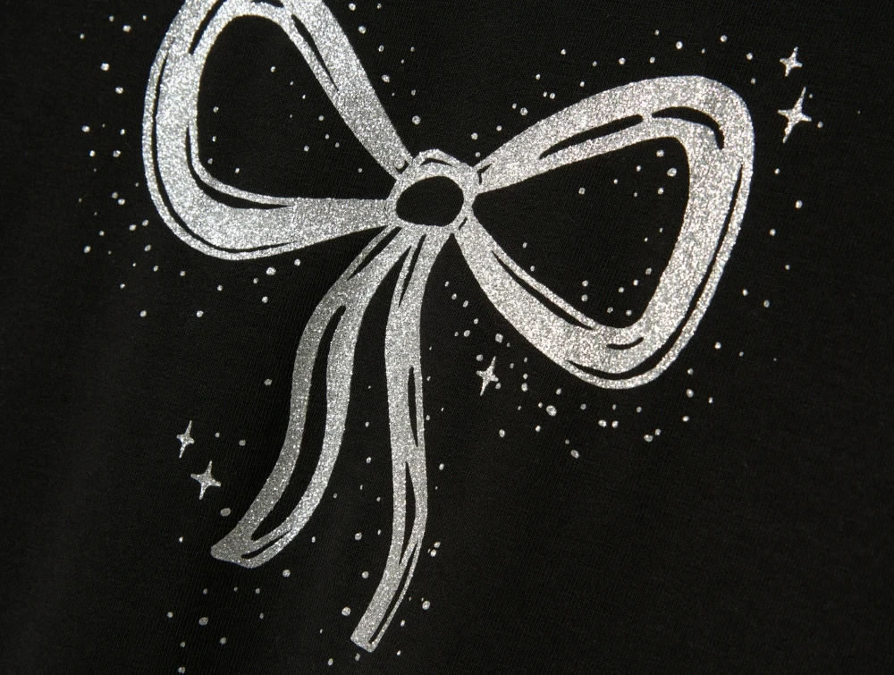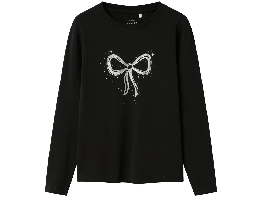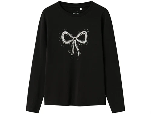 Langærmet t-shirt i farven sort med glittersløjfe fra Name It.