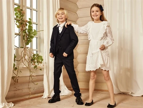 Med en lige pasform og stof i stretch for ekstra god komfort, er disse bukser behagelige og alsidig til forskellige lejligheder. Det er den perfekte udganspunkt til dit barns festlige look.