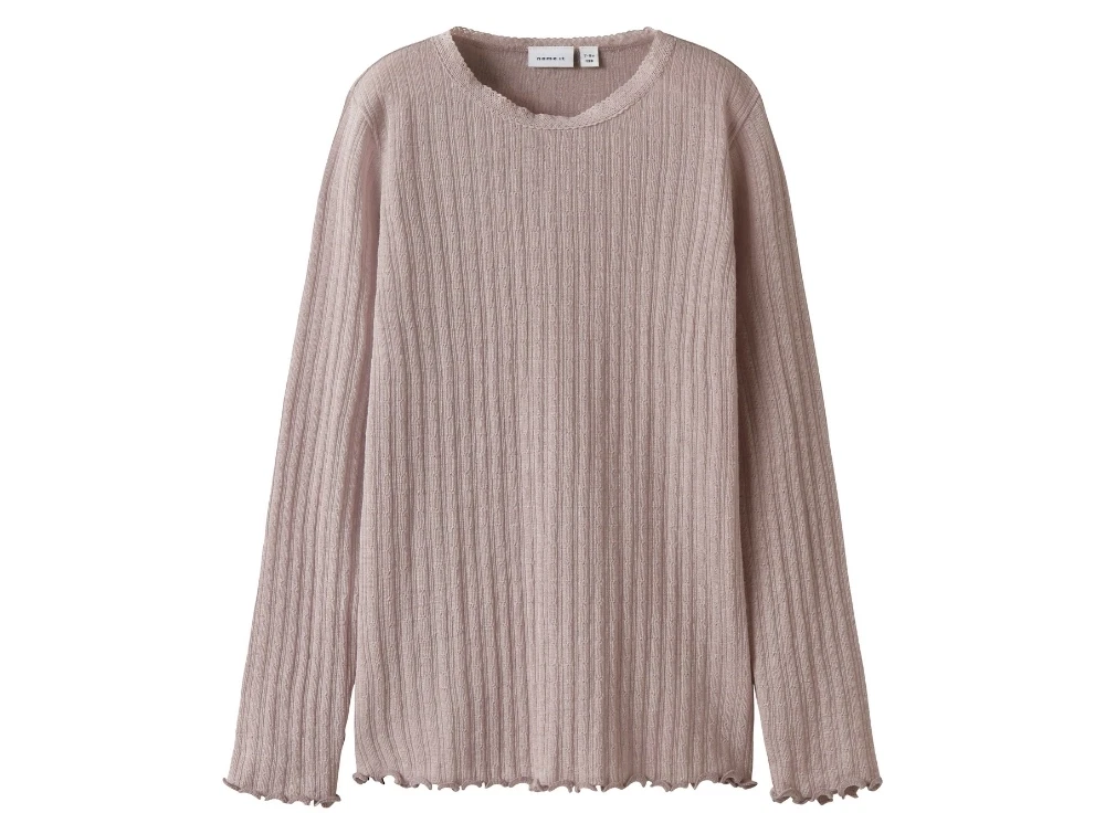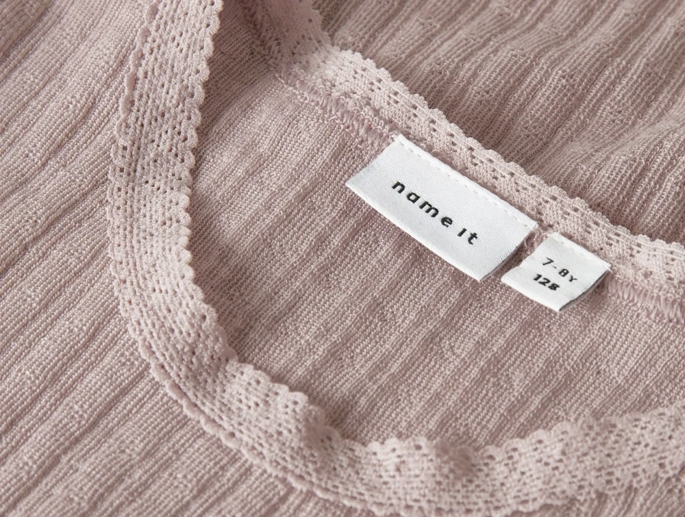 Name It blouse i støvet rosa med ribstrik og blondekant