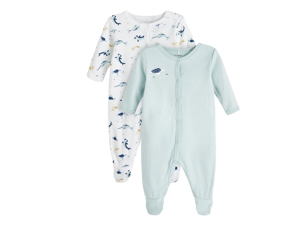 Pakken indeholder én natdragt i farven blue haze med skilpaddemotiv og én natdragt i hvid med havdyr.