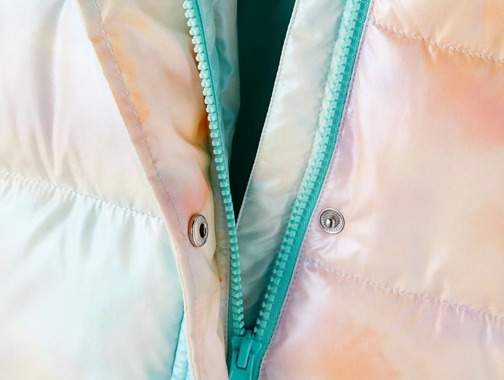 Jakken har to lommer og lukkes med lynlås og trykknapper.