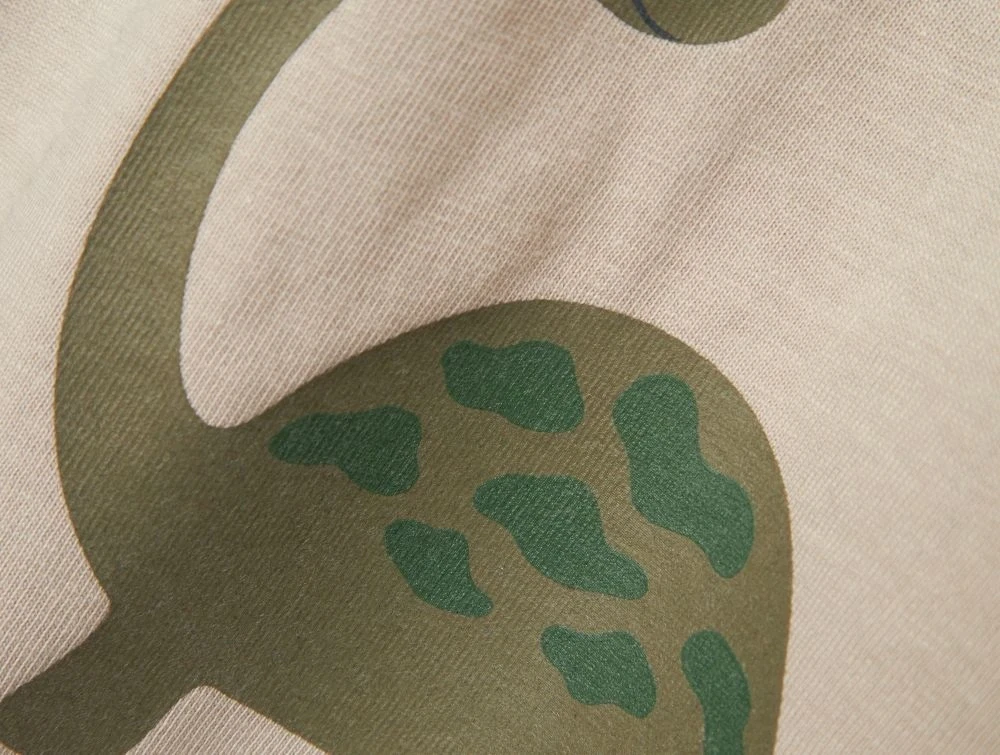 Den bløde jersey-top har et kært dinosaurprint i gummi, der giver en behagelig og let struktureret overflade. Det strækbare materiale sikrer god bevægelsesfrihed og komfort til hverdagsbrug.