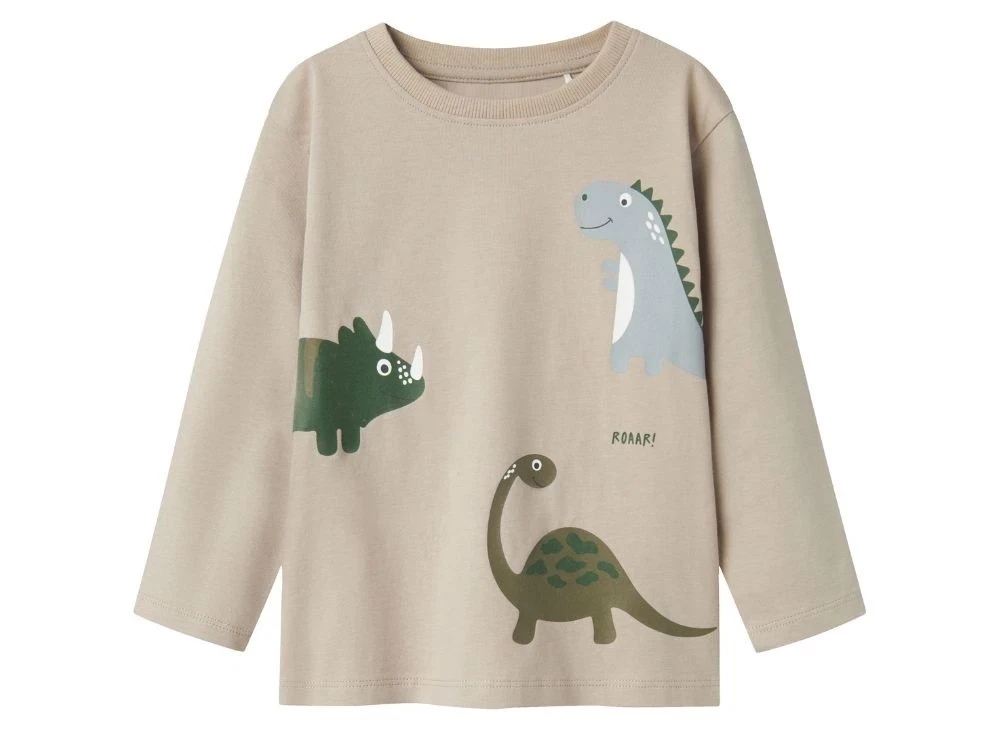 Langærmet top i farven pure cashmere med dinoprint fra Name It.
