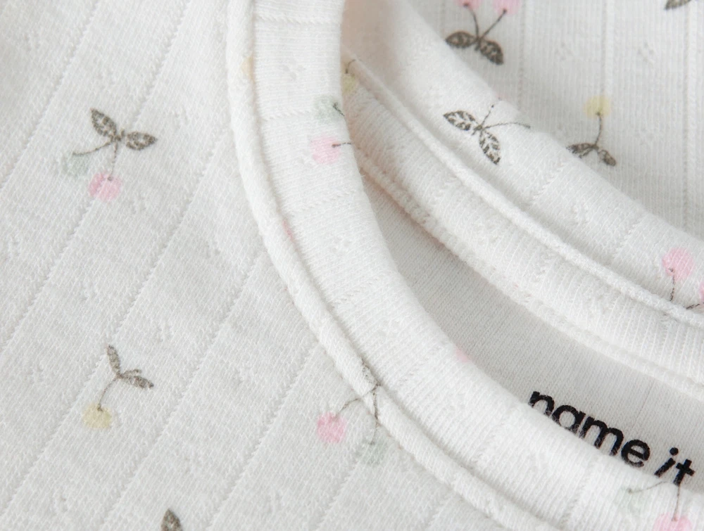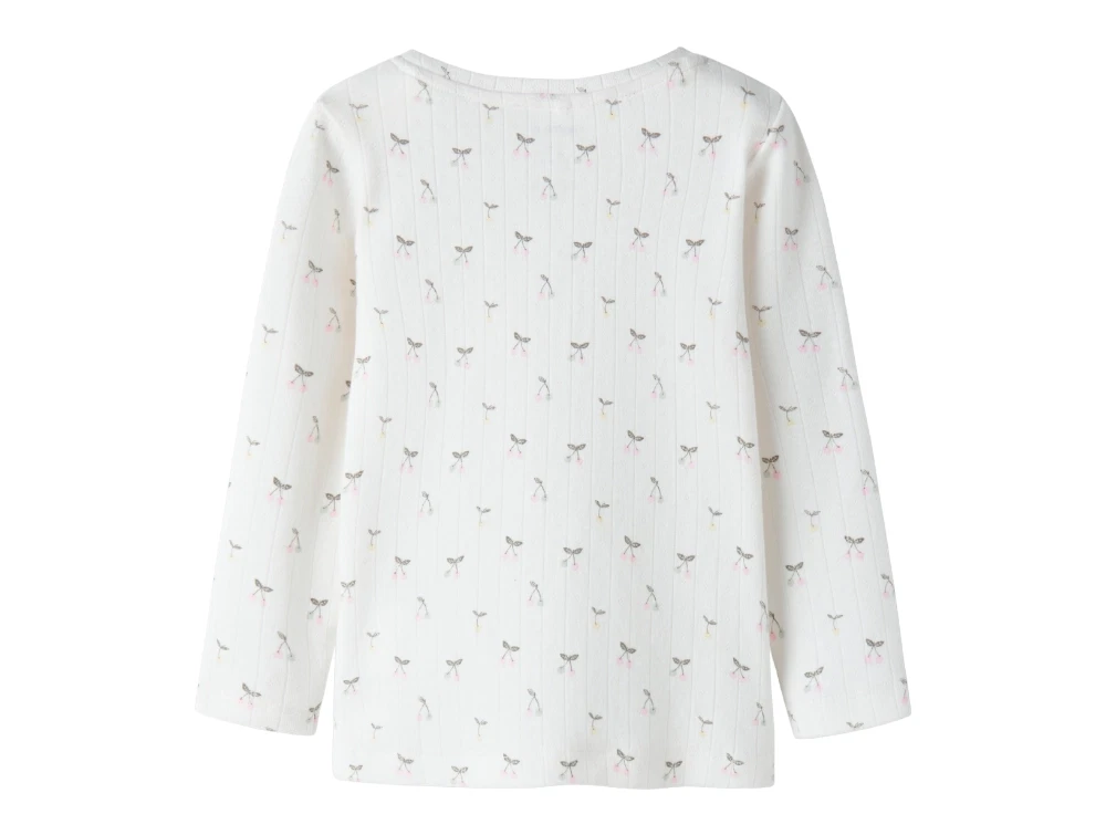 Name It bluse i råhvid nuance med små kirsebærprintName It bluse cloud dancer kirsebærprint detaljeName It bluse cloud dancer kirsebærprint bagside