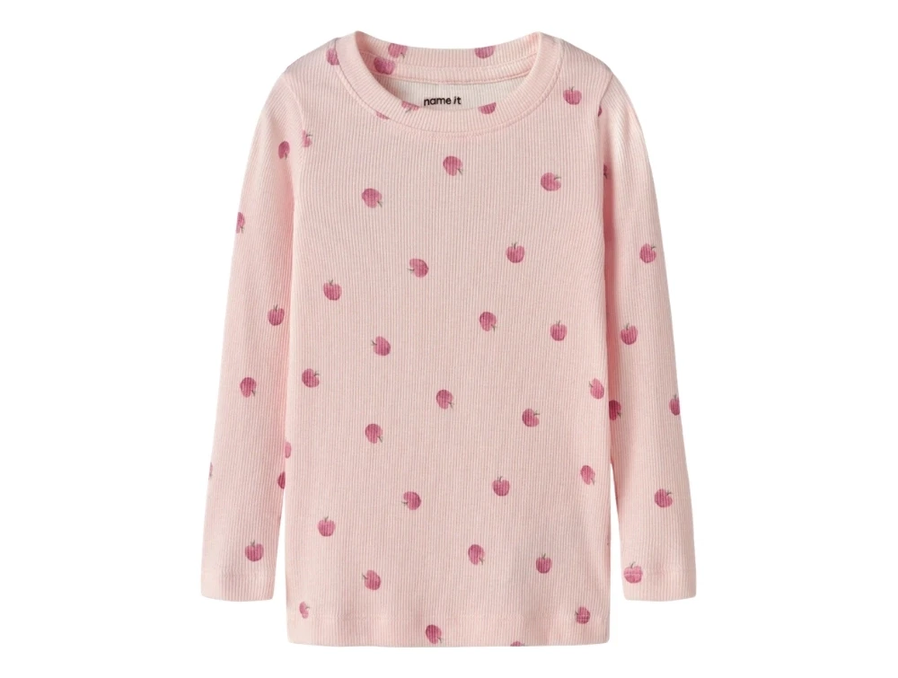 Name It bluse i lyserød nuance med æbleprint