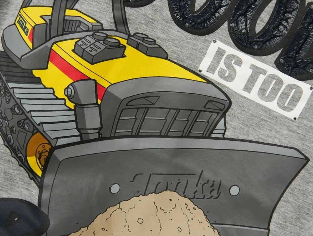 Bluse i farven grey melange med Tonka print fra Name It. Tonka er et legetøjsmærke, der er kendt for sine robuste og holdbare legetøjsbiler, især lastbiler og entreprenørmaskiner. Mærket blev grundlagt i USA i 1947 og blev hurtigt populært for sine legetøjsmetalbiler, der kunne tåle hård leg og udendørs brug. Tonka er især elsket for sine ikoniske gule dumpere og gravemaskiner, som ofte bruges til at simulere byggepladsleg.