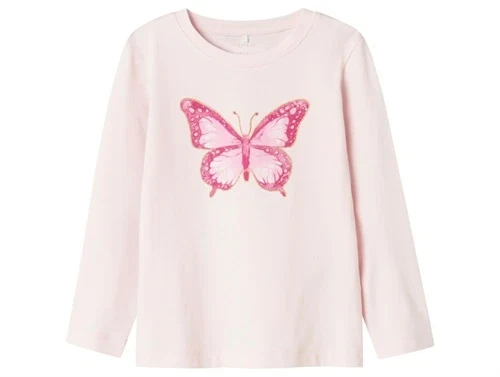 Langærmet bluse i farven lyserød (Ballerina) med et sommerfugleprint fra Name It.