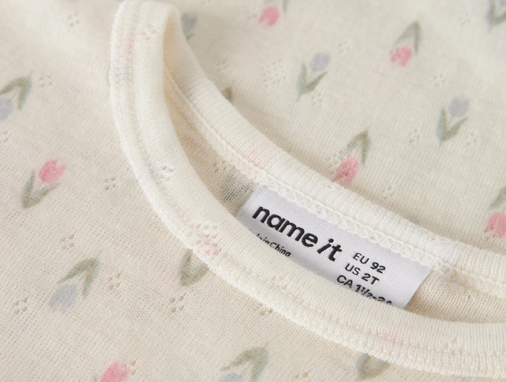 Mere information om Name it bluse coconut milk med blomsterprint merinould