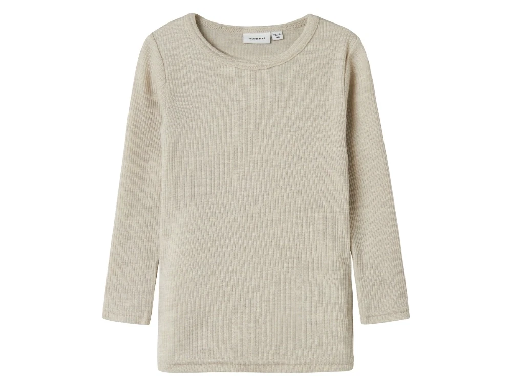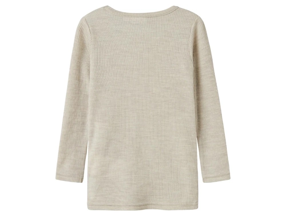 Langærmet bluse i lys grå nuance (nacreous cloud) fra Name It i ribstrikket merinould.