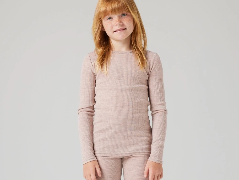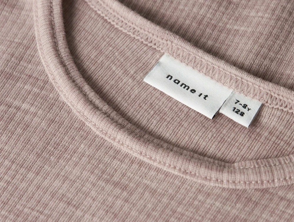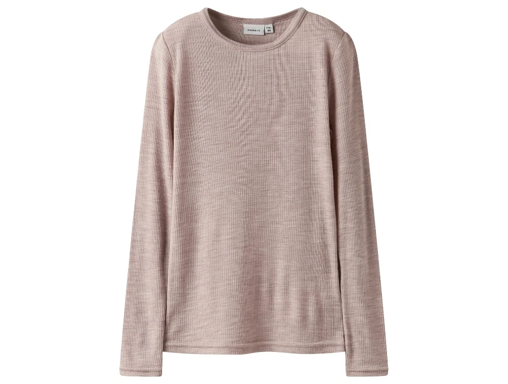 Name It t-shirt rosa i merinould med rib mønster og lange ærmer
