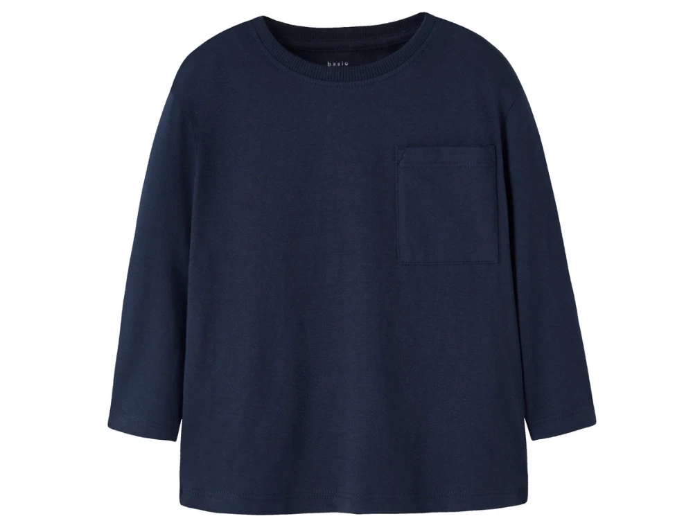 Bluse i mørkeblå nuance (navy blazer) fra Name It. Den har en afslappet pasform og en praktisk brystlomme foran.