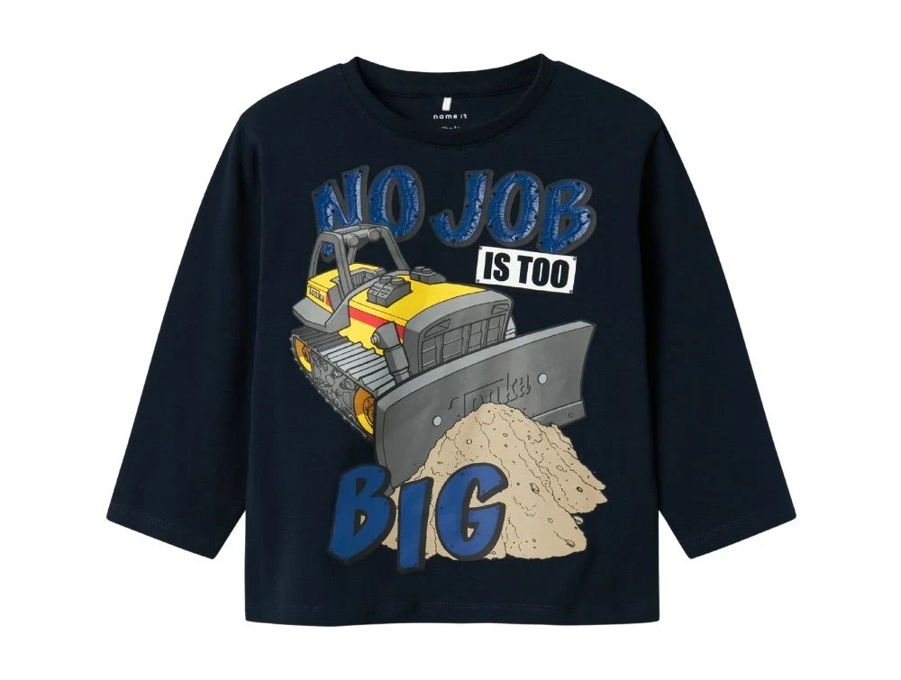 Bluse i farven navy blazer med Tonka print fra Name It. Tonka er et legetøjsmærke, der er kendt for sine robuste og holdbare legetøjsbiler, især lastbiler og entreprenørmaskiner. Mærket blev grundlagt i USA i 1947 og blev hurtigt populært for sine legetøjsmetalbiler, der kunne tåle hård leg og udendørs brug. Tonka er især elsket for sine ikoniske gule dumpere og gravemaskiner, som ofte bruges til at simulere byggepladsleg.