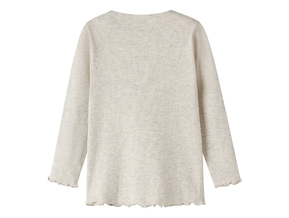 Name It bluse i råhvid nuance med blomsterbroderiDetalje af Name It bluse med små broderede blomsterName It rib bluse til børn i råhvid nuance