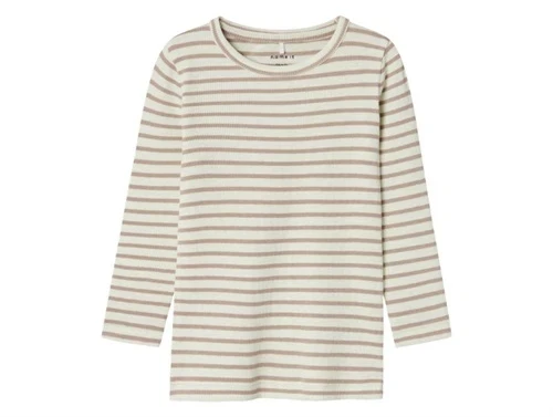 Klassisk langærmet rib t-shirt med striber i farven pure cashmere fra Name It.