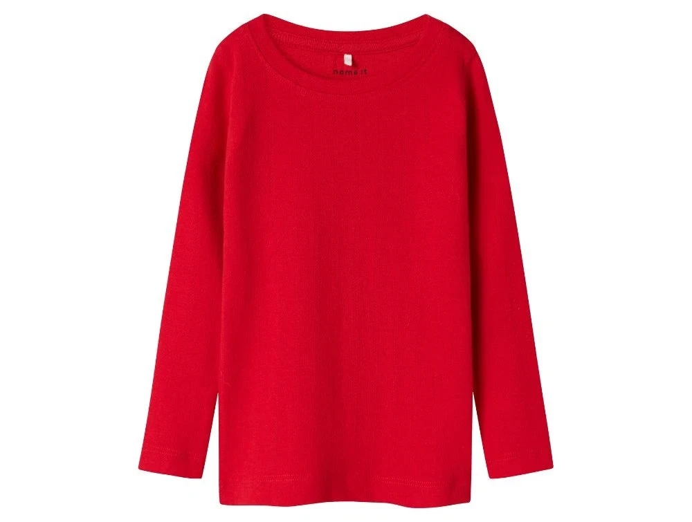 Langærmet bluse i farven rød (Chinese Red) med hulmønster fra Name It.