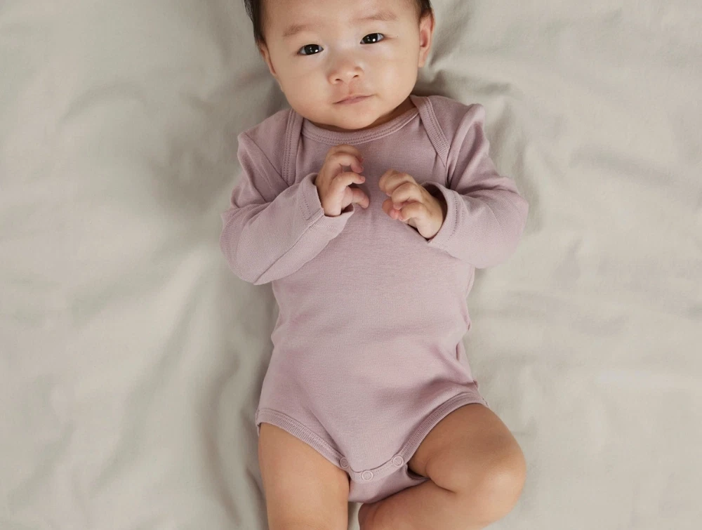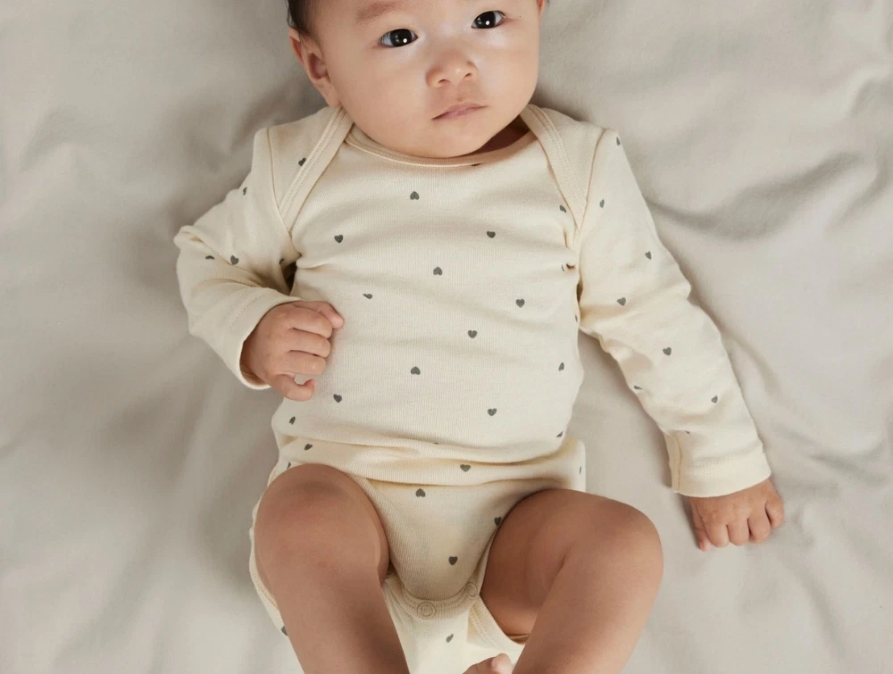 Bodyerne har lange ærmer, amerikansk halsudskæring og trykknapper mellem benene. Et sødt og praktisk basissæt til hverdagsbrug.