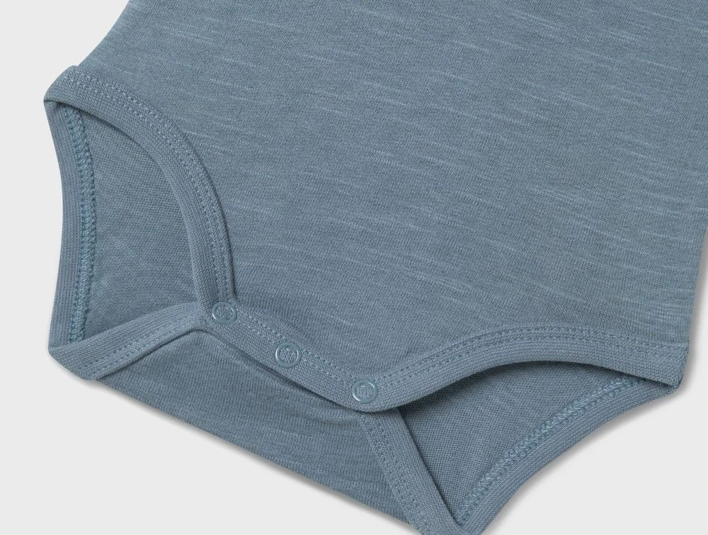 Bodystockingen er fremstillet i en blød blanding af økologisk bomuld og modal, som føles behagelig mod huden og giver god bevægelighed. Pasformen er almindelig og lukkes med trykknapper mellem benene.