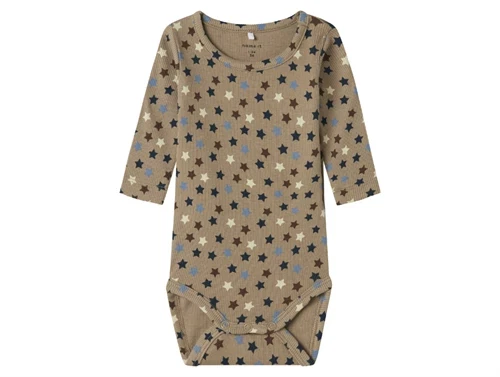 Body i farven lys brun (weathered teak) med print af stjerner fra Name It.