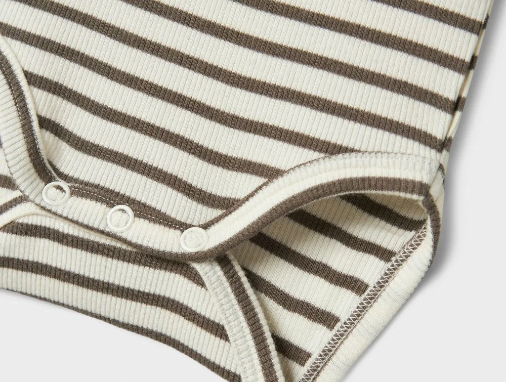 Forny din babys garderobe med denne stribet kortærmede body fra Name It. Bodyen er lavet i rib af en blanding af 57% økologisk bomuld, 38% modal og 5% elastan. Materialet er strækbart og blødt, hvilket sikrer god bevægelsesfrihed til hverdagsbrug