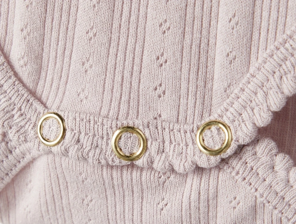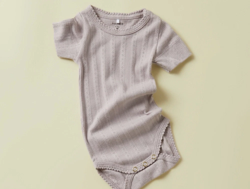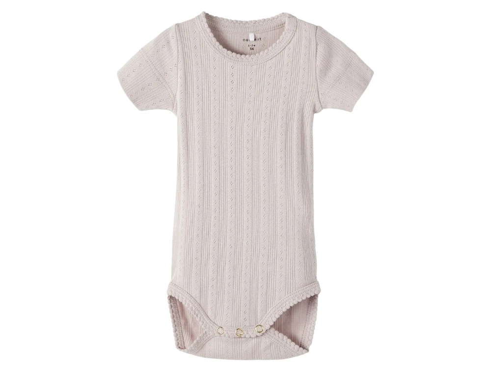 Kortærmet body i farven cloud gray med pointelle hulmønster fra Name It.