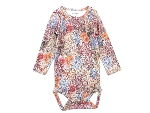 Langærmet body i farven crystal gray med løvprint fra Name It.
