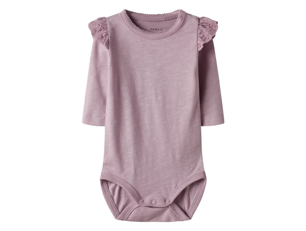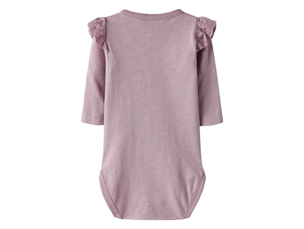 Mere information om Name It body dawn pink med blondeflæser