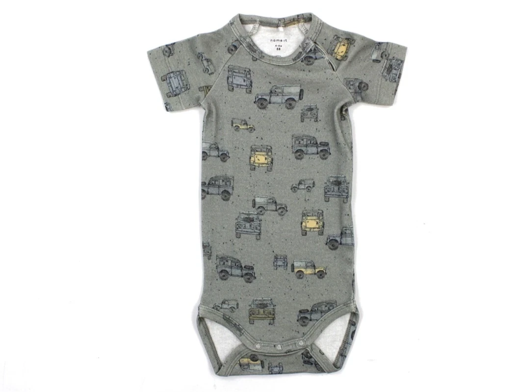 Kortærmet body i farven forest fog med bilprint fra Name It.