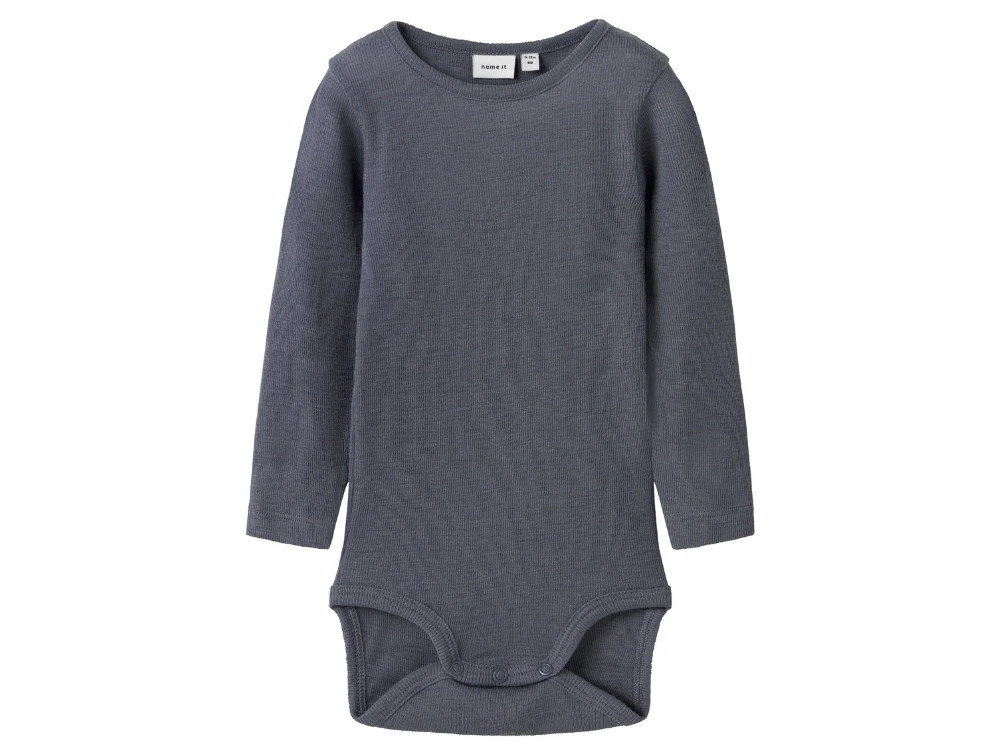 Name It body i blågrå nuance med ribmønster i merinould og silke