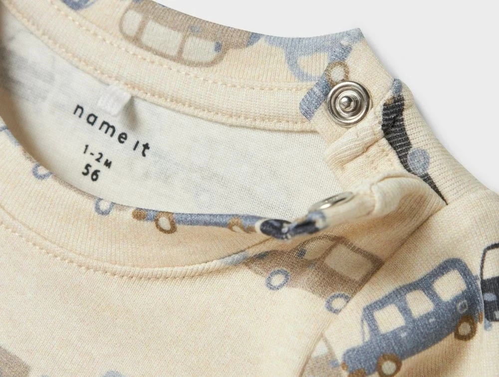 Råhvid (peyote melange) body med print af biler fra Name It.