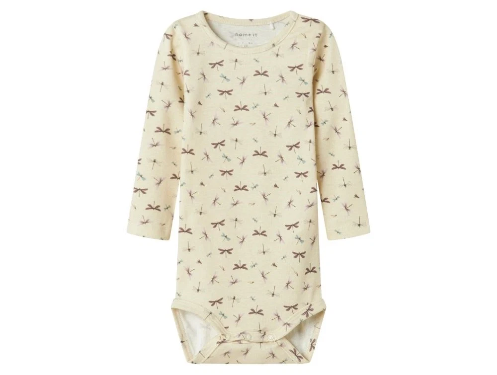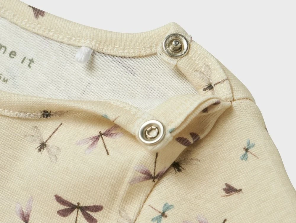 Name It body summer sand med guldsmedeprint forfraName It body summer sand med guldsmedeprint bagfraDetaljebillede af trykknapper på Name It body i summer sandDetalje af halslukning med trykknap på Name It body i summer sand