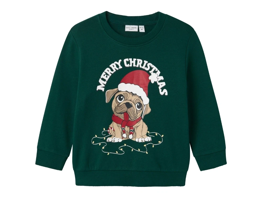 Julesweatbluse i farven botanical garden med hundeprint fra Name It.