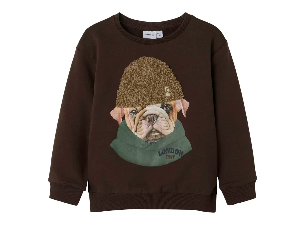 Sweatbluse i farven bracken med hundeprint fra Name It.