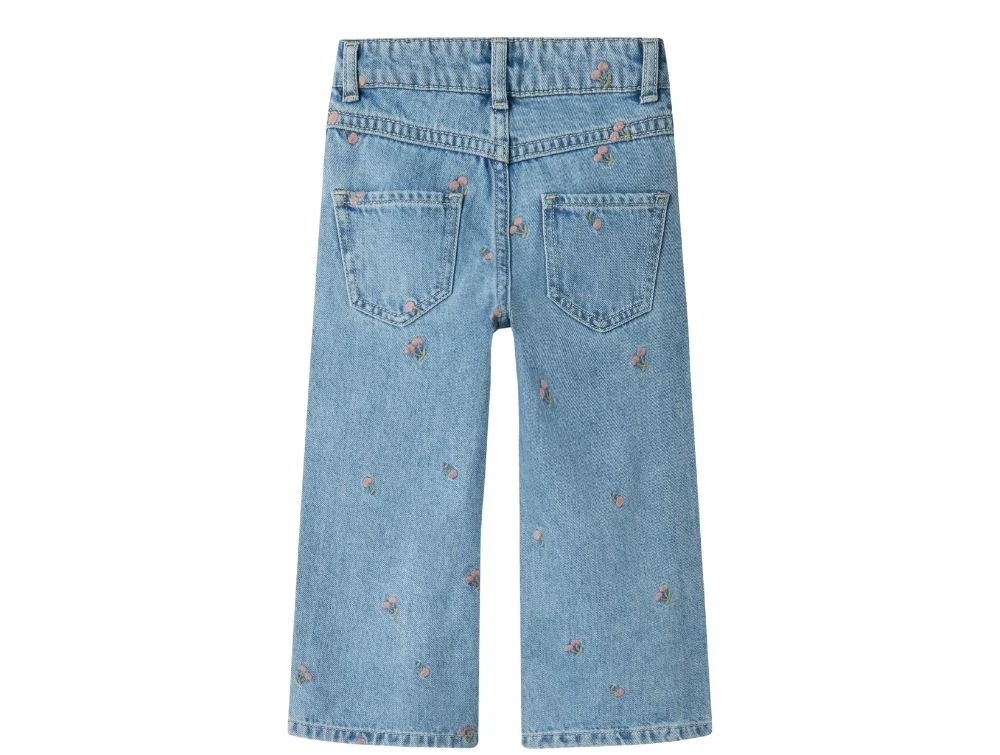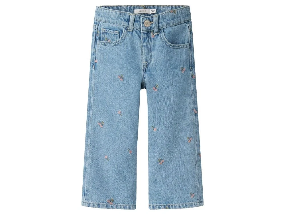 Mere information om Name It jeans lys blå denim med kirsebærbroderi
