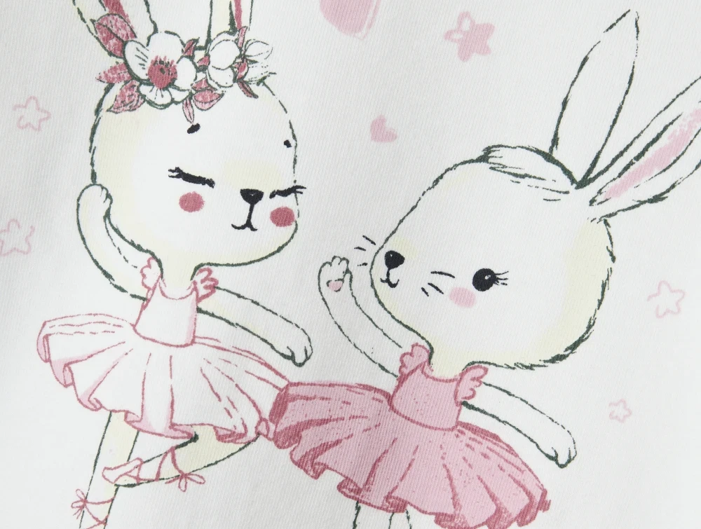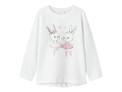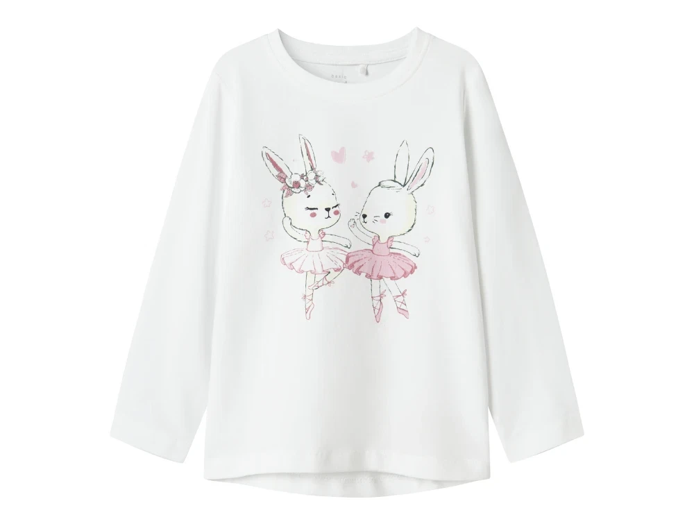 Langærmet top i farven bright white med dansende kaniner fra Name It.