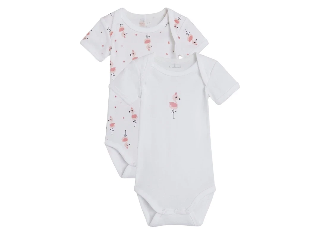 2 kortærmede bodystockings i farven bright white med flamingoprint fra Name It.