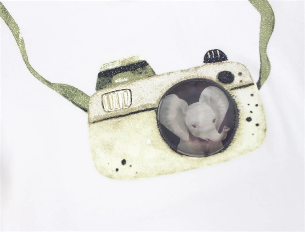T-shirt i farven bright white med kameraprint og applikation fra Name It.
