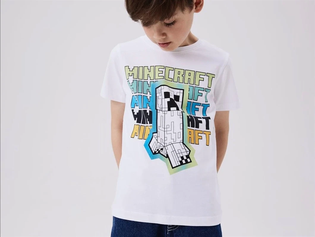 T-shirt i farven bright white med cool Minecraft-print fra Name It.