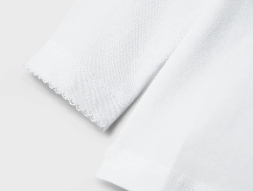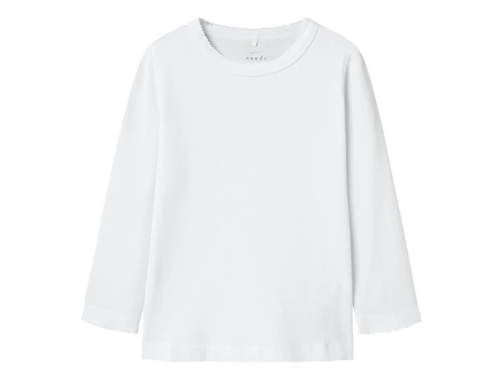 Langærmet top/bluse i farven bright white med diskret blondekant ved hals og ærmeslut fra Name It.