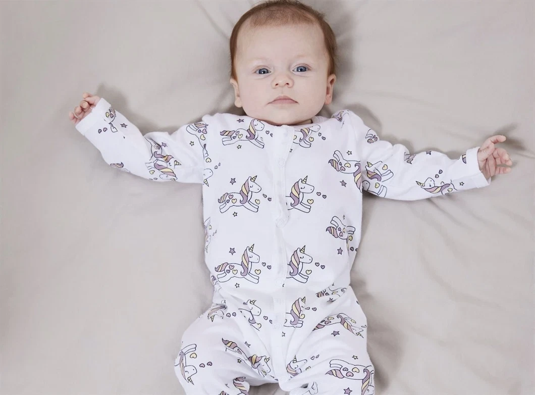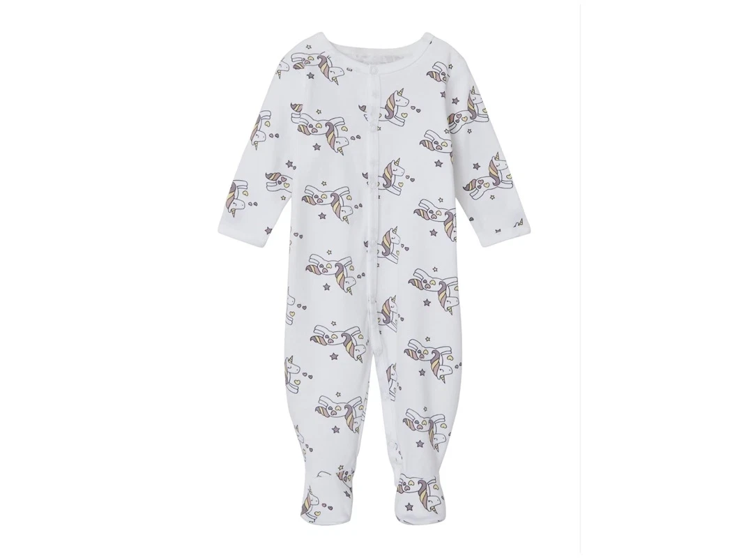 Natdragt i farven bright white med print af enhjørninger fra Name It.