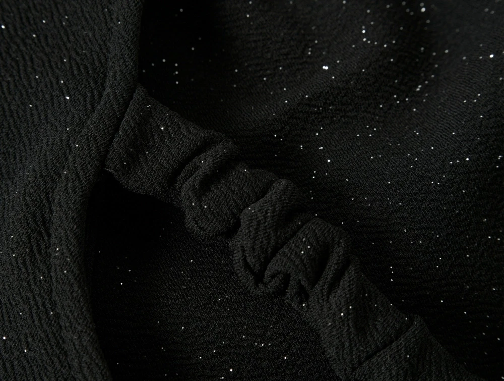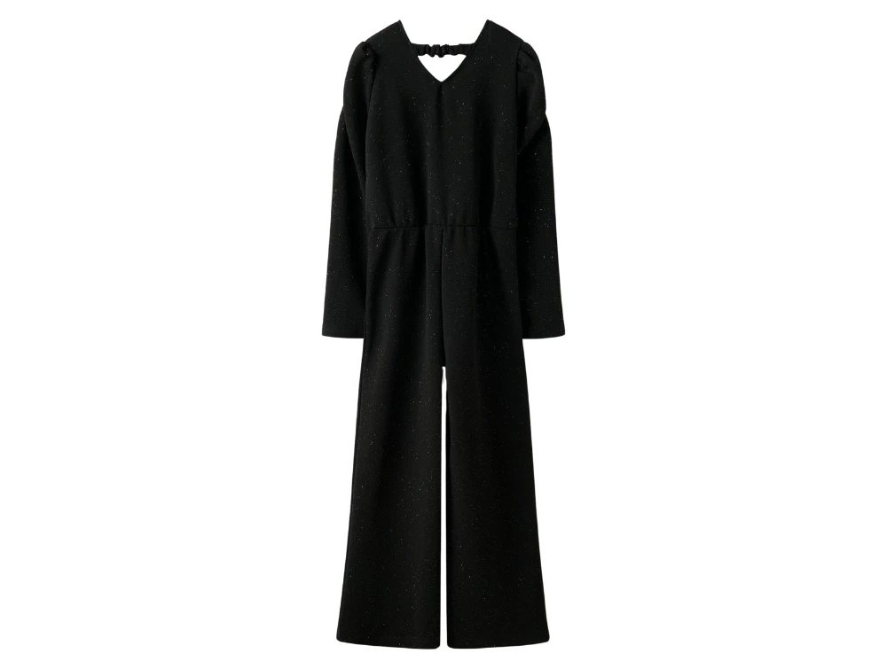 sort buksedragt fra Name It med glitter og lange ærmerdetalje af ryg med elastik og glimmer på Name It buksedragtpige iført sort glitter buksedragt fra Name Itdetalje af glimmerstof på Name It buksedragtbagside af sort buksedragt fra Name It