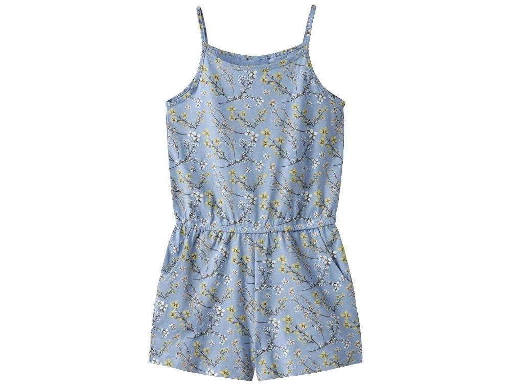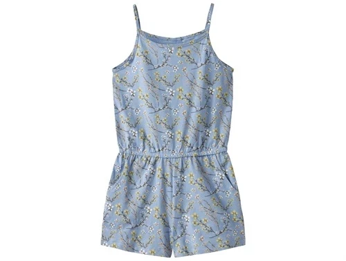 Lyseblå sommerdragt fra Name It i blød jersey med sødt blomsterprint og smalle stropper.