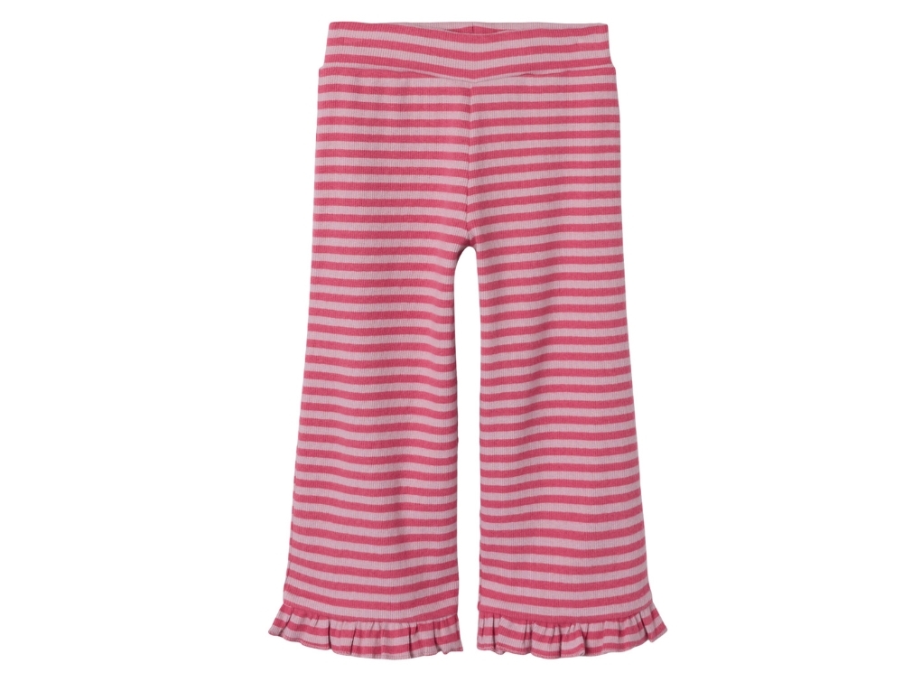 Stribede bukser i rosa og pink fra Name It med flæsekantStribede bukser i rosa og pink fra Name It med flæsekant