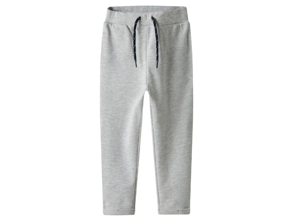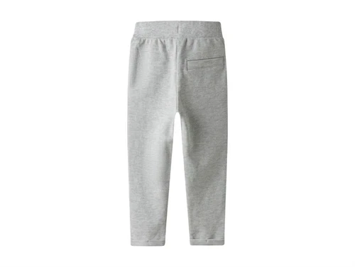 Bukser i lysegrå (light grey melange) fra Name It i en blød sweatkvalitet med opsmøg og justerbar bindesnor i taljen.
