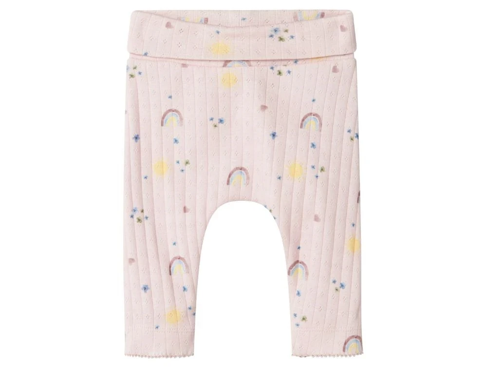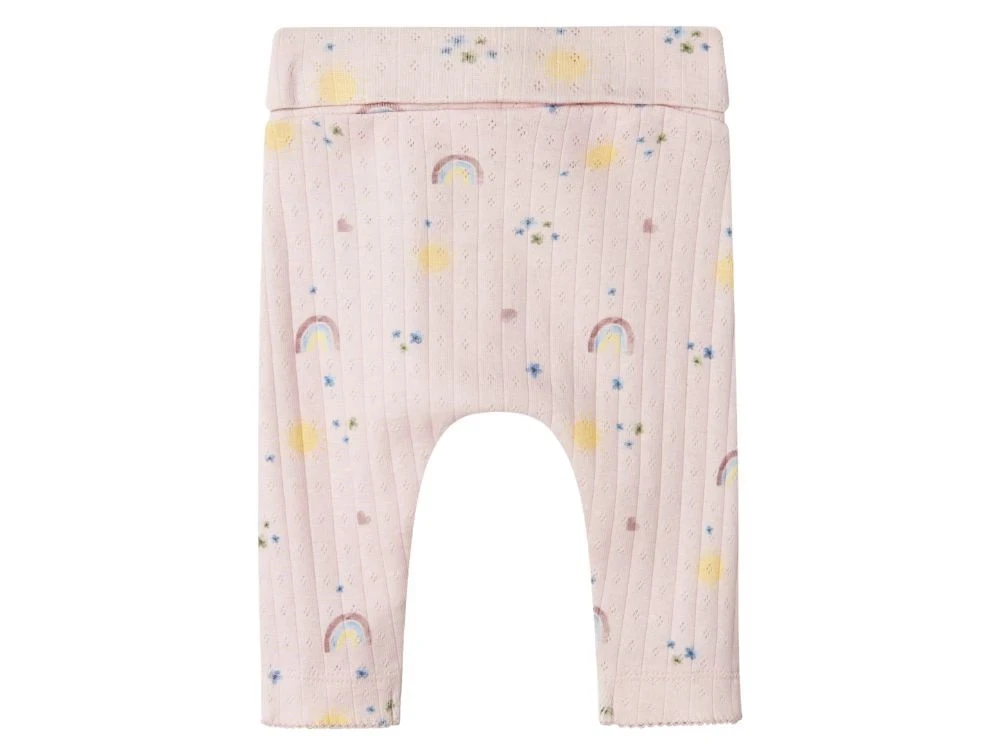 Lyserøde babybukser med regnbueprint fra Name It 13241102 Light LilacLyserøde babybukser med regnbueprint fra Name It 13241102 Light Lilac bagfraTungekant i bunden af benene på lyserøde babybukser med regnbueprint fra Name It 13241102 Light Lilac